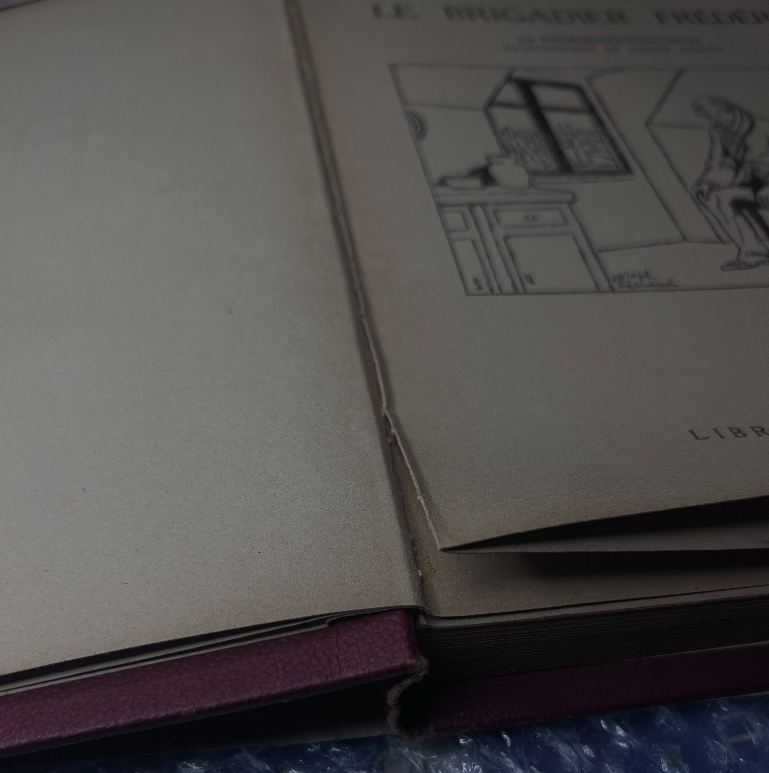 Chaque ouvrage fait l’objet d’un examen attentif portant sur l’état des matériaux, les tensions internes, la solidité des coutures, l’intégrité des mors et du dos. Cette étape permet d’identifier les altérations visibles et structurelles et d’en comprendre l’origine.
